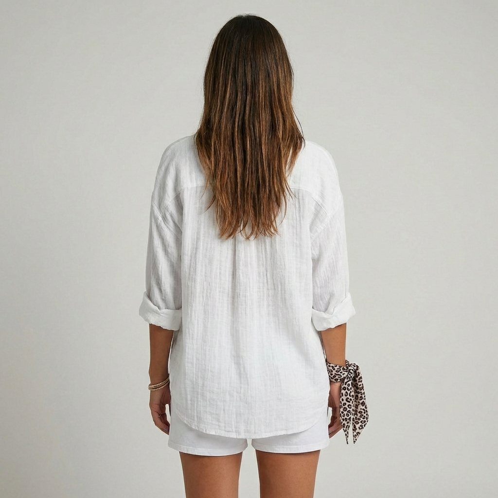 Barbara - Damen Oversized Crinkle Leinen Hemd mit Knopfleiste